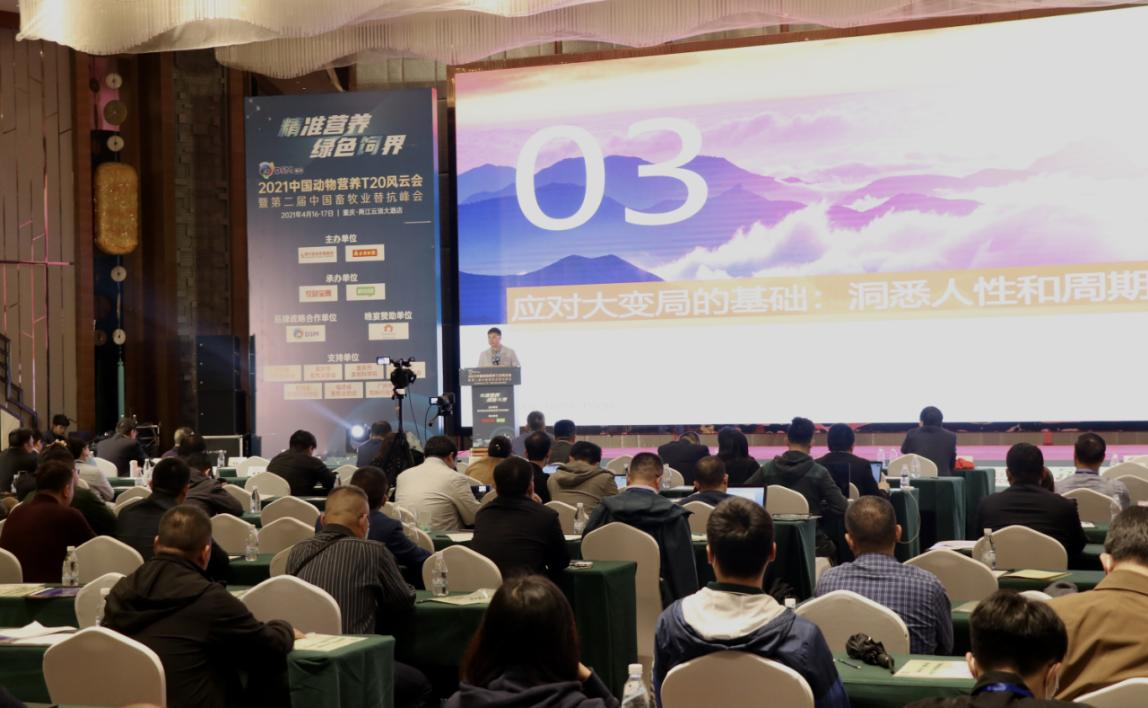 4月16-17日,由南方報業傳媒集團、南方農村報主辦,農财寶典新牧網承辦的2021中國動物營養T20風雲會暨第二屆中國畜牧業替抗峰會在重慶盛大召開。來自全國各地的行業專家、企業和協會相關代表近500人共赴盛會,為共同促進動物營養綠色發展出謀劃策。播恩集團作為論壇金牌協辦單位參與本次會議,傳播播恩觀點與智慧,與行業單位、人士共享替抗新成果。