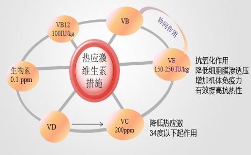 蛋雞日糧維生素E、維生素C、維生素K以及生物素、核黃素的含量也要相應增加。維生素C是蛋殼有機質(原膠原蛋白)的合成所必需,可通過調節血漿皮質酮的濃度(降低)而緩解熱應激的有害作用。熱應激時,在日糧中添加維生素C 200g/t,産蛋率提高11%,破損率降低1.5%,進而提高雞蛋的品質。維生素E可以增加細胞内鈣離子的濃度,可引起肌酸激酶從細胞到血漿的流動。血漿中肌酸激酶(CK)濃度升高,是禽類受熱應激損傷的一個指标。