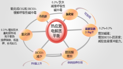 蛋雞無汗腺,在夏季高溫季節,蛋雞熱應激是以呼吸道散熱為主,熱喘息中,CO2呼出過多,以至血液中的CO2減少,NaHCO3和H2CO3比例改變,即血液中PH值改變,進而發生呼吸性堿中毒。