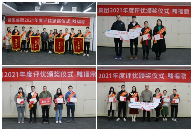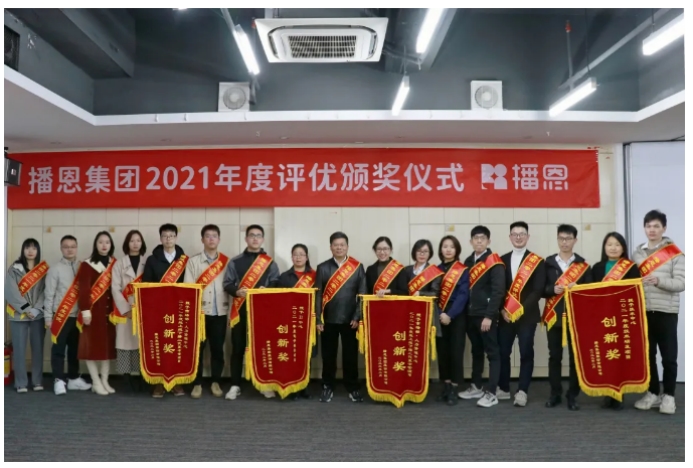 2022年2月初,為表彰播恩集團2021年優秀團隊與個人,展現優秀團體精神風貌,營造學習先進、勇争第一的文化氛圍,促進企業健康高速發展,集團特于總部、各分(子)公司及營銷戰區舉辦2021年度評優頒獎典禮。