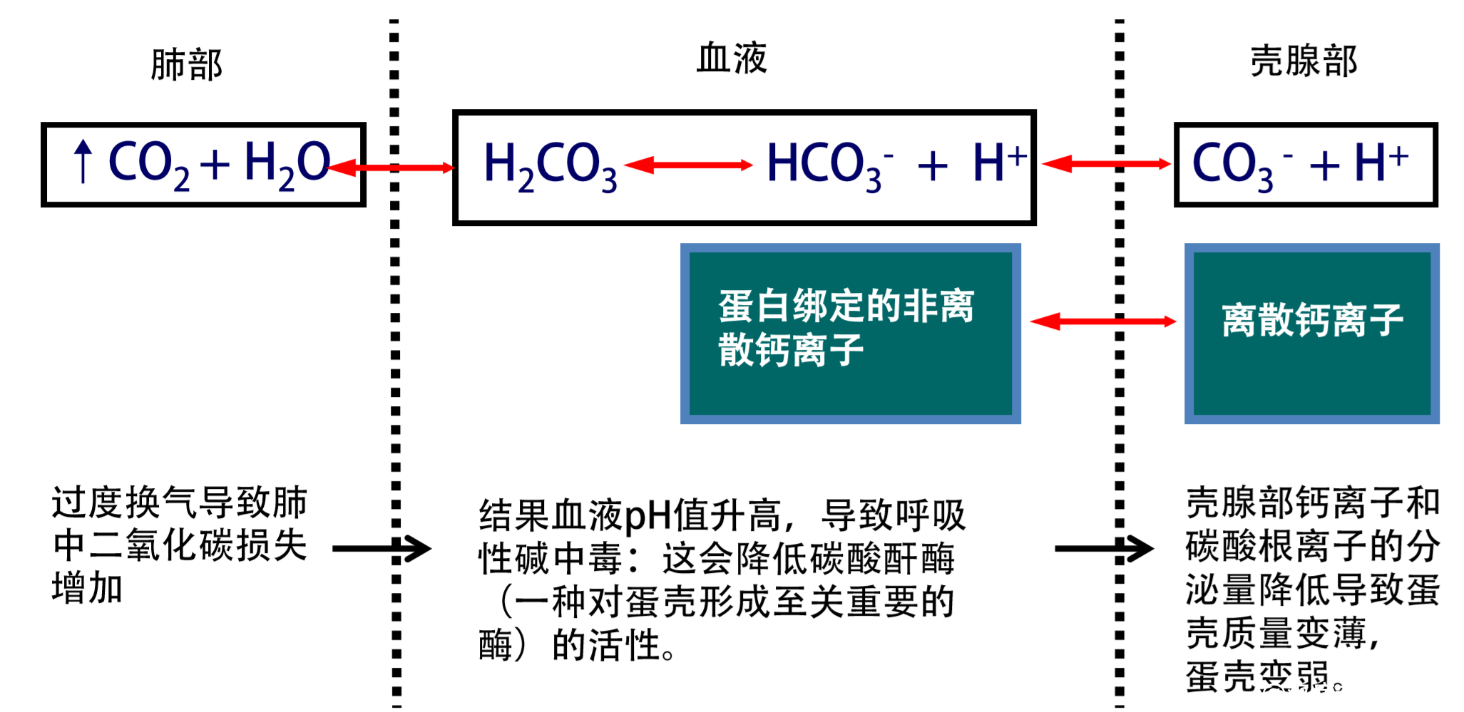 主要原因有兩個:一個是鈣、磷和維生素D的攝入量減少;另一個是代謝的原因,高溫條件下,雞的甲狀腺素分泌減少。甲狀腺素水平的高低直接影響新陳代謝的速率,而代謝速率是影響雞産蛋性能的重要因素之一,所以高溫引起采食量的下降,進而導緻體重降低,最終引起産蛋率和蛋重降低,蛋殼質量變差。因此在夏天高溫季節,飼養蛋雞的關鍵技術措施是解決降溫問題。