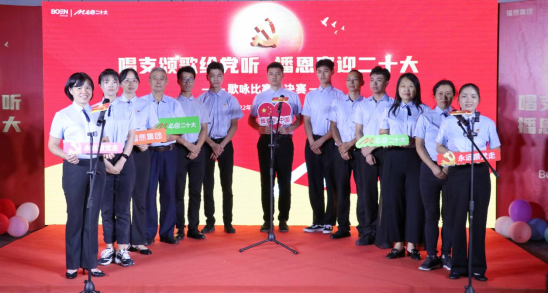 總決賽在開場秀《唱支山歌給黨聽》中拉開序幕。來自集團各單位的12名決賽選手依次演繹,為觀衆激情獻唱了《提劍》、《萬疆》、《龍的傳人》、《青春走在新征程》、《紅星閃閃》、《祖國不會忘記》、《紅旗飄飄》等歌曲。一首首耳熟能詳的紅歌,時而嘹亮雄壯,時而婉轉柔情,時而激越奔放,唱出了播恩集團廣大幹部職工在中國共産黨的堅強領導下,不忘初心,勇毅前行的精氣神,以及對黨無限忠誠、永遠跟黨走的堅定信念。選手們的精彩表演,赢得了現場觀衆陣陣掌聲,比賽現場氣氛熱烈、高潮疊起。