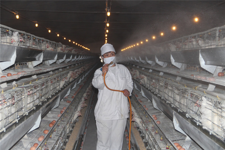 由于冬春交替時節天氣仍舊寒冷,畜禽圈舍常常處于封閉狀态,空氣流通性比較差,加之圈舍内部陰暗、潮濕、寒冷,因此極易引發呼吸道傳染病,所以,防止疫病發生至關重要。要定期對畜舍進行消毒,保證飼養環境的清潔衛生。推薦每周用過氧乙酸、播恩酸化劑、百毒殺、或者戊二醛對圈舍消毒一次,消毒劑應該交替使用,避免病原菌和病毒對消毒劑産生耐藥性。每次清理料槽後,使用聚維酮碘對料槽進行消毒。此外為了避免因為人的原因導緻家畜生病,工作人員每次進出畜舍之前,都要到消毒間進行消毒,消毒間内設超聲波霧化消毒系統,消毒間外以及圈舍外部地面鋪設生石灰。要經常觀察家畜的精神狀态、食欲、糞便等情況,及時發現疫情,及時治病。