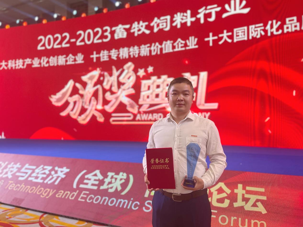 2023年4月19日,第十九屆畜牧飼料科技與經濟(全球)高層論壇頒獎盛典在河南如期舉行,播恩集團憑借優秀的科技創新能力和成果轉化能力,榮獲“十大科技産業化創新企業”獎。