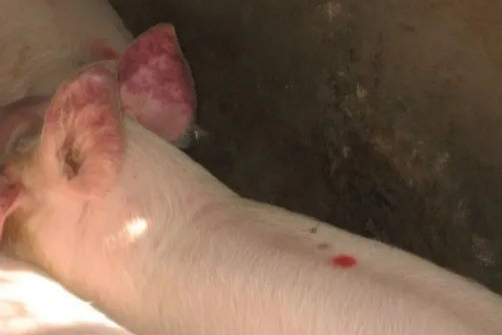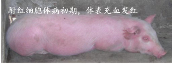 豬隻感染附紅細胞體、弓形體病初期,也可伴發全身皮膚潮紅現象。治療:一邊肌注磺胺間甲氧嘧啶鈉,一邊肌注多西環素或長效土黴素,另外加注維生素C;全群添加多西環素和磺胺類藥及多維等進行預防。