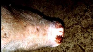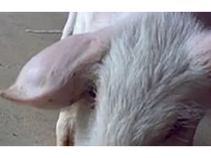 一般常見于豬耳朵的蜂窩織炎,需切開排出血水,用生理鹽水反複沖洗,病變部分切割,烙鐵烙切口;然後肌注青黴素。