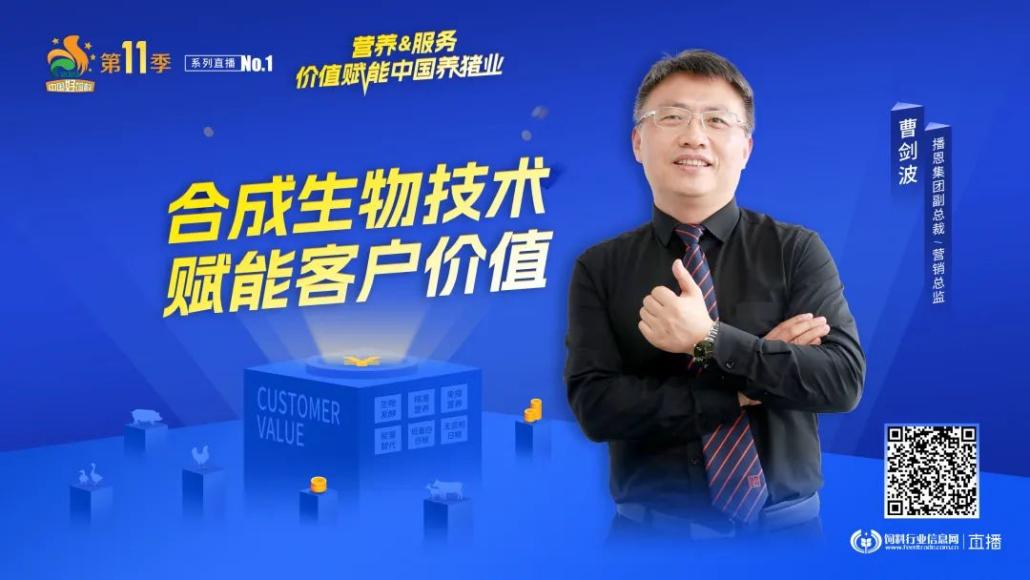 2023年7月,由中國飼料行業信息網主辦、國家飼料工程技術研究中心和中國畜牧獸醫學會養豬學分會聯合主辦的《“中國好飼料·第11季”系列直播No.1--營養&服務 價值賦能中國養豬業》以線上直播方式開啟,本次直播活動主要圍繞“飼料營養技術創新與技術服務升級”等主題展開,并且進行了深入交流探讨和案例分析。播恩集團副總裁/營銷中心總監曹劍波受邀參加了本次直播活動,并作了主題為《合成生物技術賦能客戶價值》的報告分享。