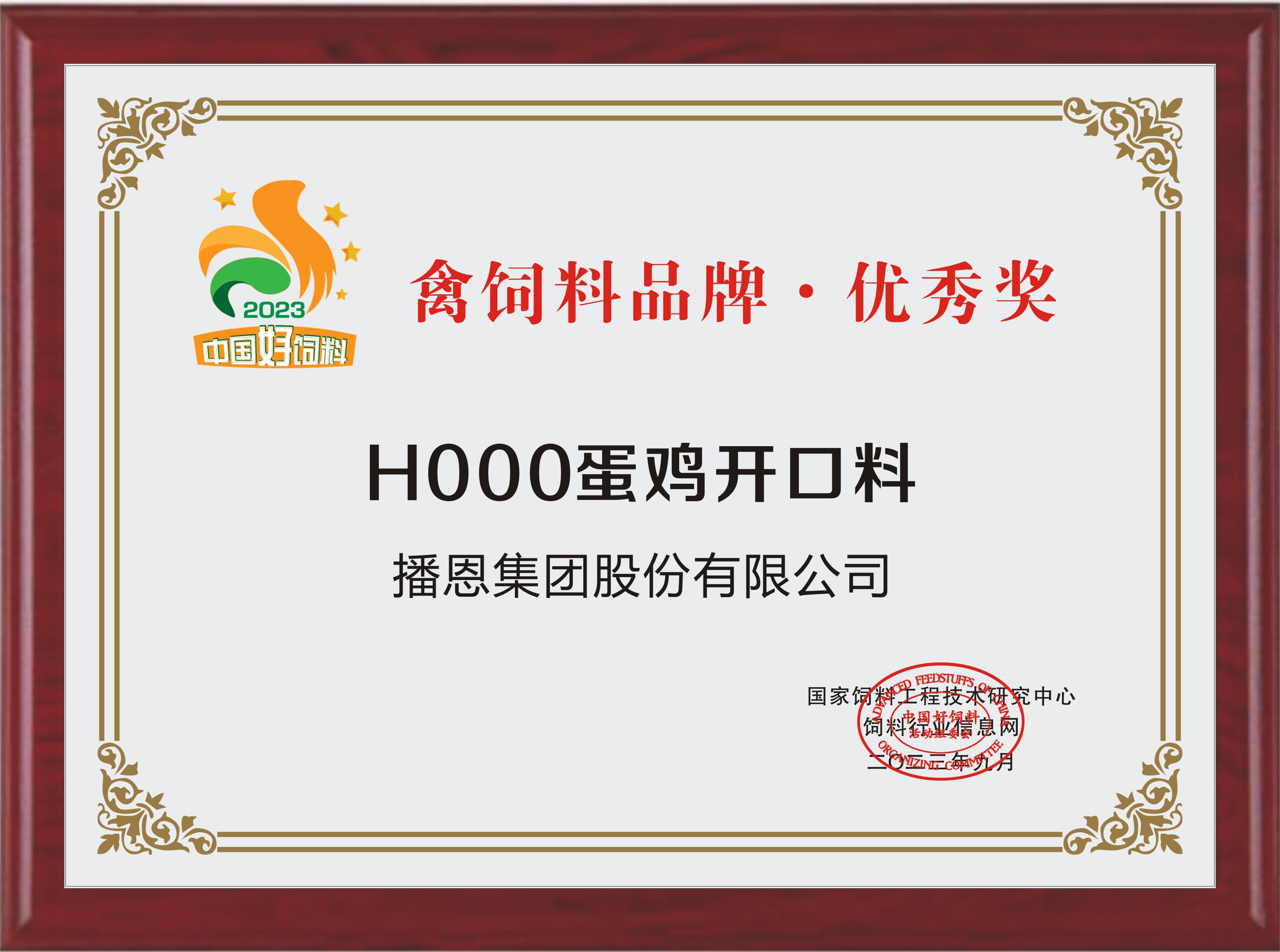 “H000蛋雞開口料——禽飼料品牌·優秀獎”獎牌