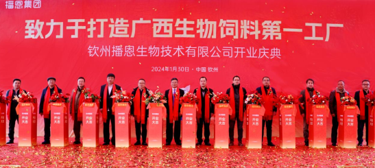2024年1月30日,欽州迎來一盛事——欽州播恩生物技術有限公司正式開業。該項目是播恩集團的重點項目,将依托全國唯一的農業農村部飼料合成生物技術重點實驗室,緻力于打造成為廣西生物飼料第一工廠。