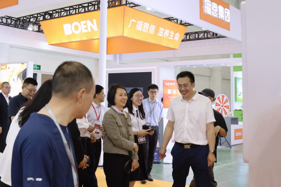 廣東省農業農村廳二級巡視員廖紀坤(圖左三)等領導一行莅臨播恩展位參觀指導