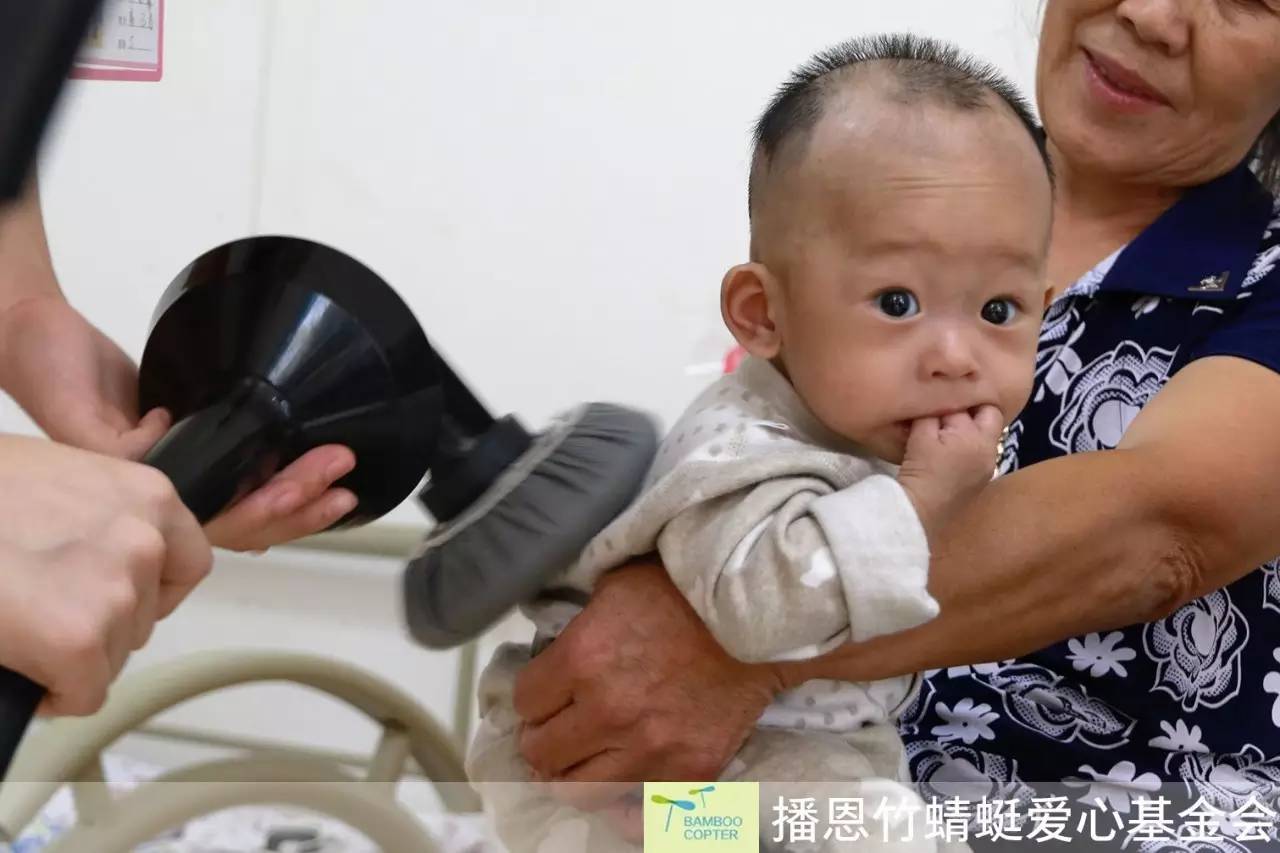 ▲盧俊睿寶寶在療養:一雙大眼睛充滿了對這個世界的好奇和期待··· ···(寶寶,吃手指不好哦)