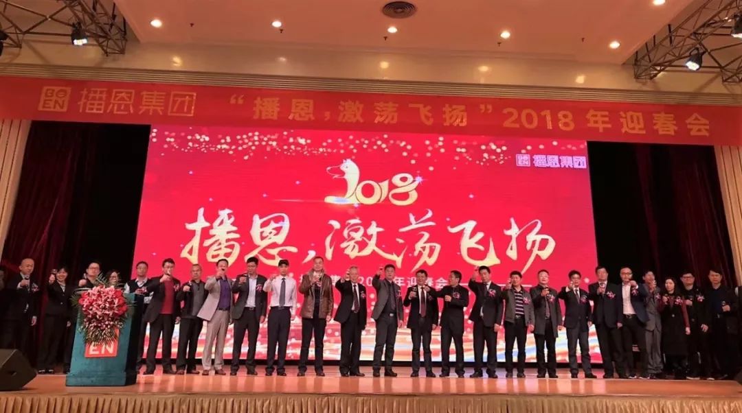 律回春晖漸,萬象始更新。 2月24日,播恩集團在番禺祈福酒店隆重舉辦了以“播恩,激蕩飛揚”為主題的2018年迎春會。集團總裁鄒新華先生,特邀嘉賓華南農業大學傅偉龍教授等專業人士和戰略合作夥伴、媒體,各大區/事業部、工廠生産和管理代表,以及總部職能部門200餘名員工齊聚一堂,共度新春!